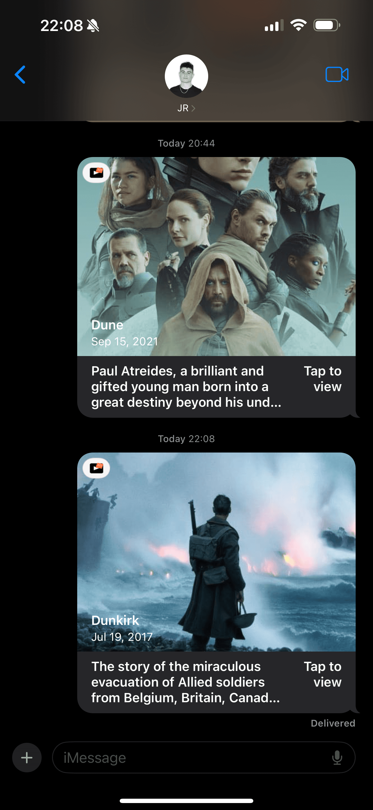 Your message includes the poster, key details, and a smart link that opens a branded page with “Where to Watch.”